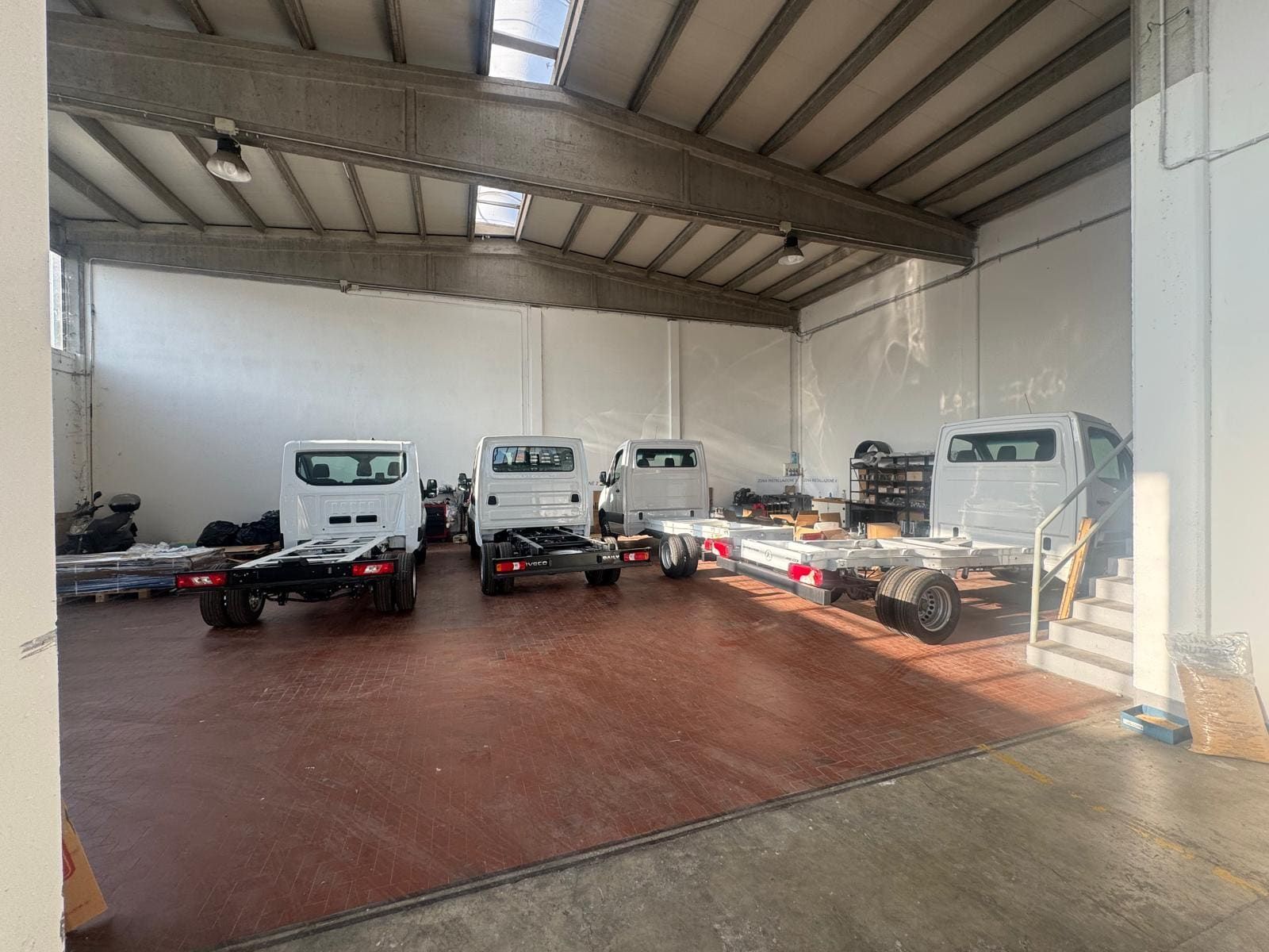L’officina interna è dotata di tutte le apparecchiature necessarie per il montaggio su veicoli industriali, di: